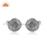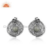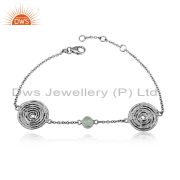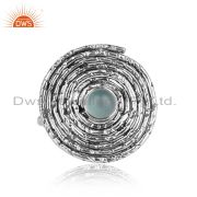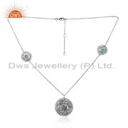Round Designer Oxidized 925 Sterling Silver Aqua Chalcedony Pendant