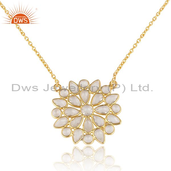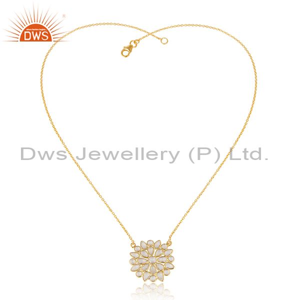 Round Flower Design Gold Plated 925 Silver Cz Chain Pendants