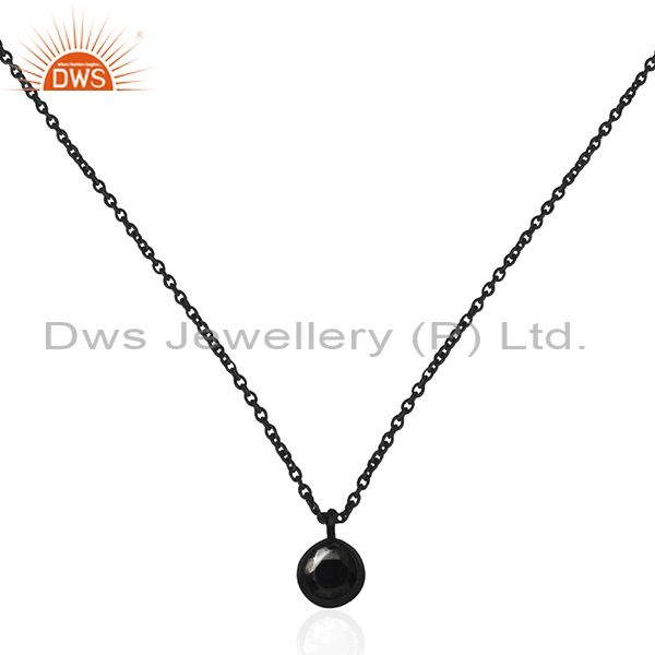 Round Hematite Gemstone Pendant Black Sterling Silver Chain Jewelry Manufacturer