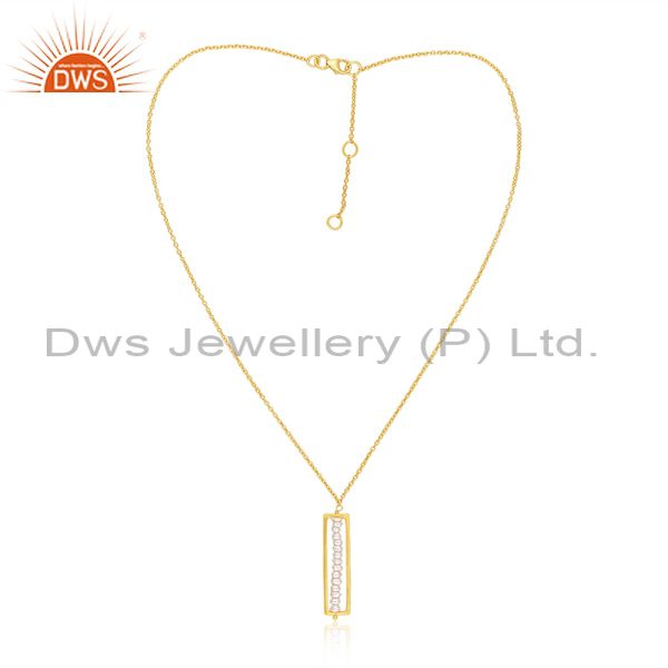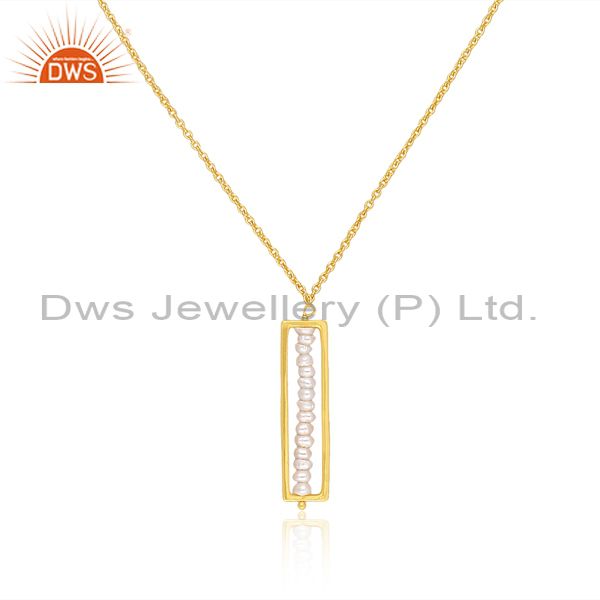 Round Pearl Beads Set Pendant And 18K Gold On Silver Chain