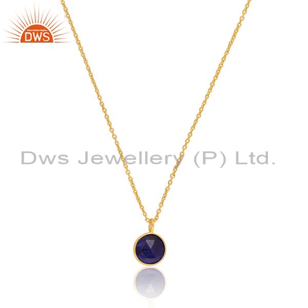 Round Sapphire Natural Corundum Pendant And 18K Gold Chain
