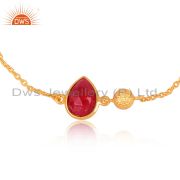 Ruby Red Corundum Gemstone 18K Gold Plated Sterling Silver Pendant With Chain
