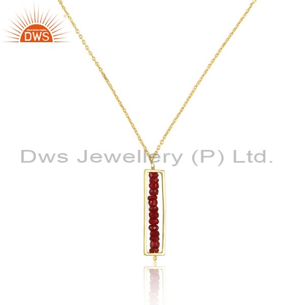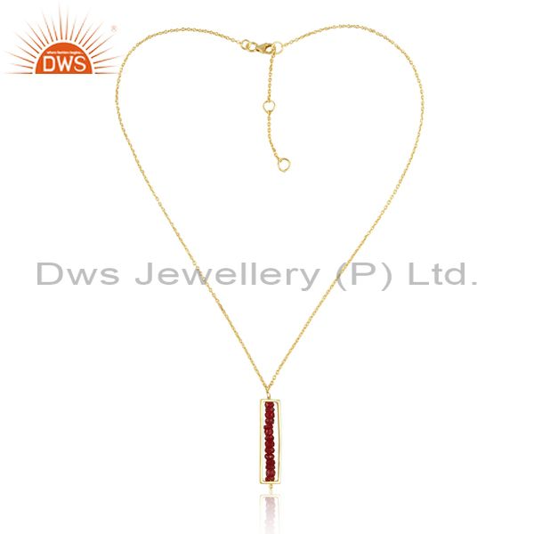 Ruby Set Rectangular Gold On Silver Pendant And Classy Chain