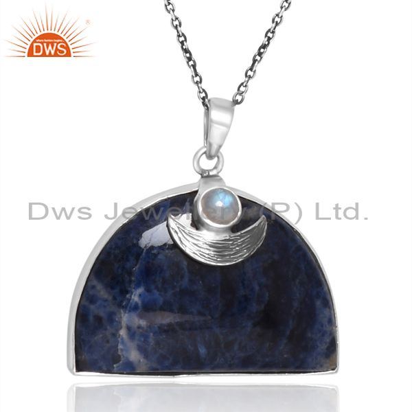 Semi Circle Pendant In Silver With Moonstone And Sodalite