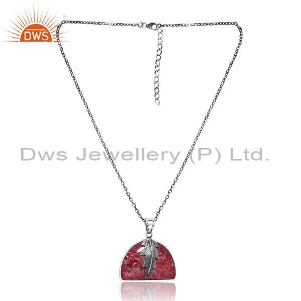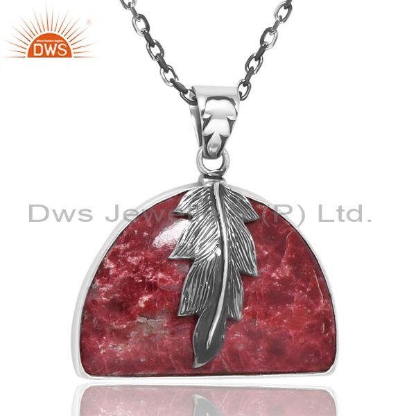 Semicircle Pendant In Pink Thulite With Chain And Design