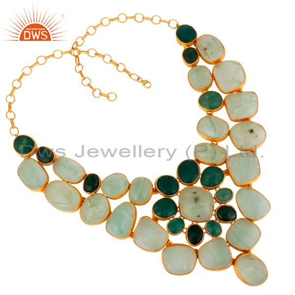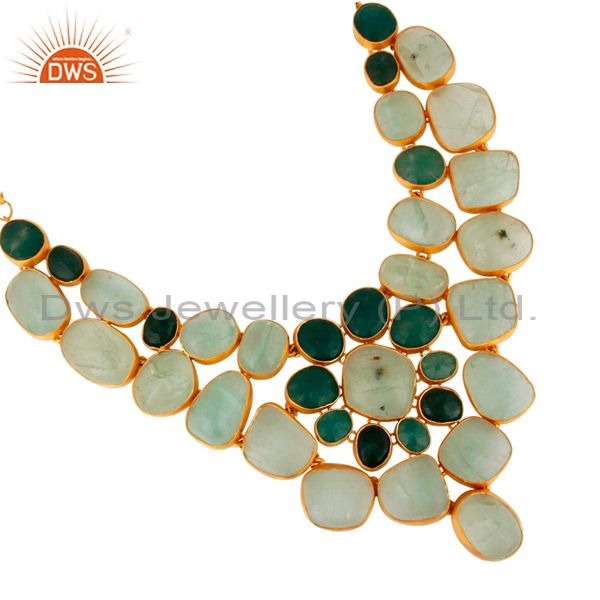 Silver Aventurine And Flourite Statement Necklace Handmade Gemstone Jewelry