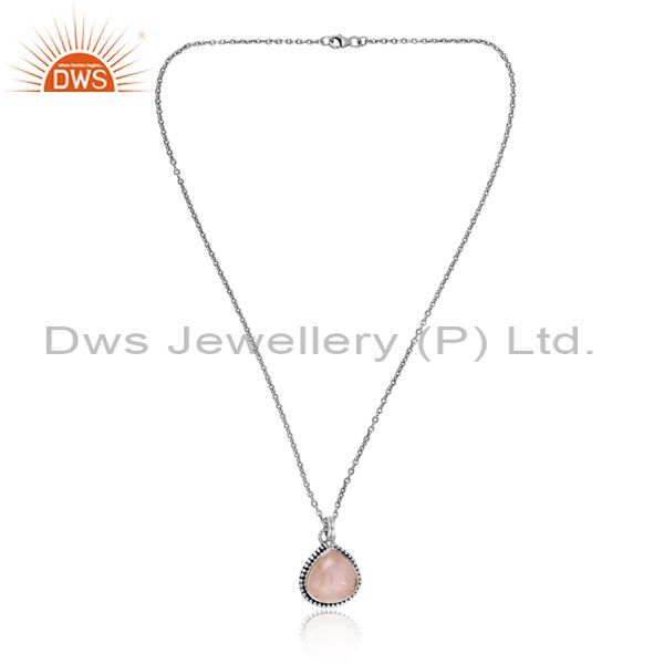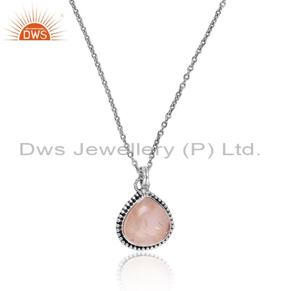 Silver Chain & Pendant With Rose Quartz Cabochon Heart Gem