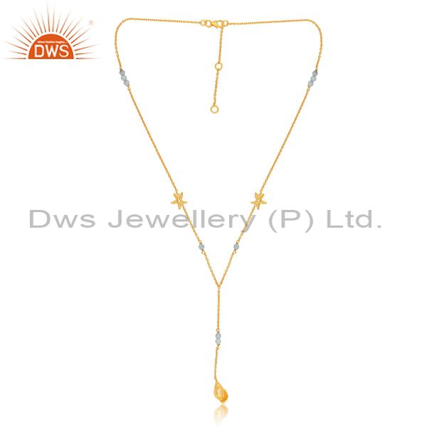 Silver Chain And Pendant With Aqua Chalcedony Round Stone