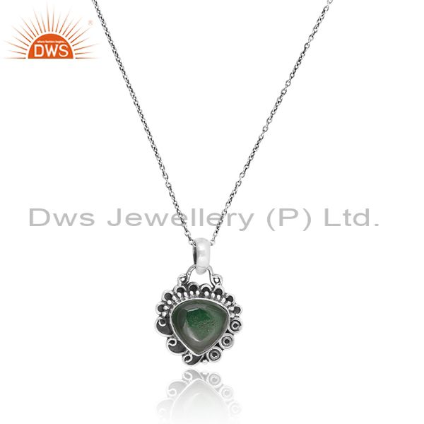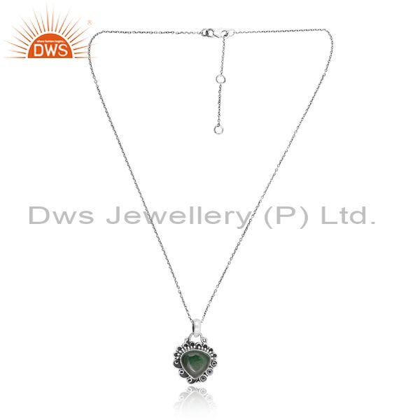 Silver Chain And Pendant With Malachite Cabochon Heart Gem
