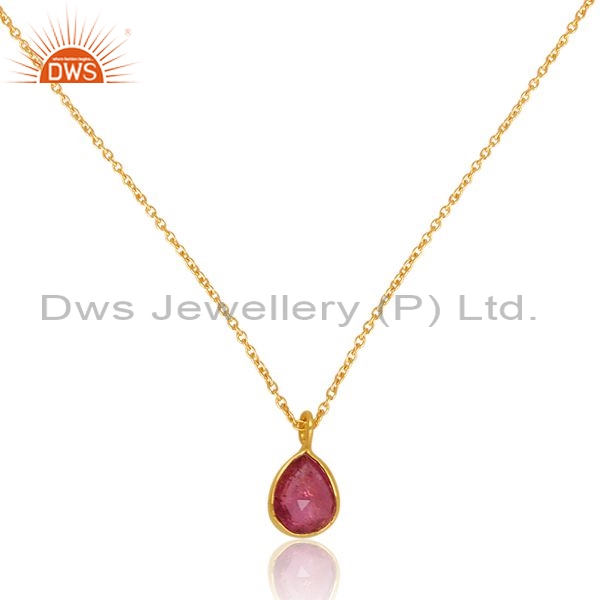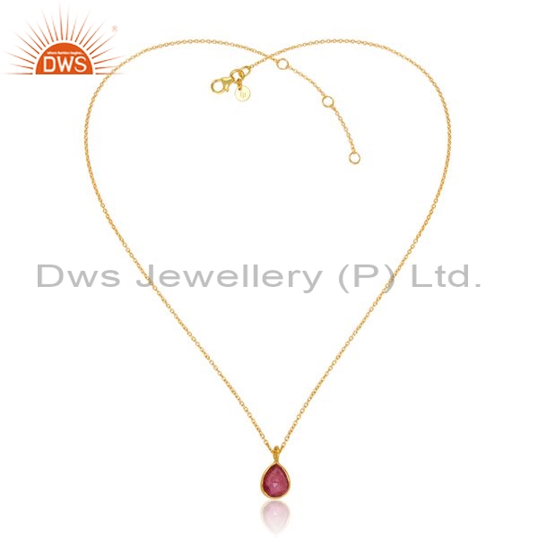 Silver Chain And Pendant With Pink Tourmaline Pear Cut