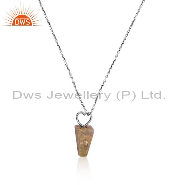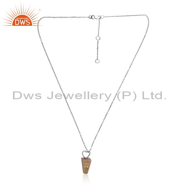 Silver Chain And Pendant With Unakite Pyramid Square Cut Gem