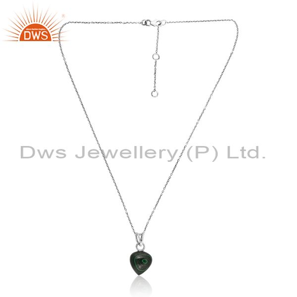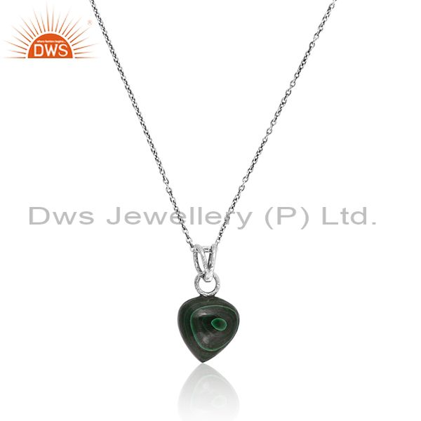 Silver Chain Malachite Plain Briolette Heart Shaped Pendant