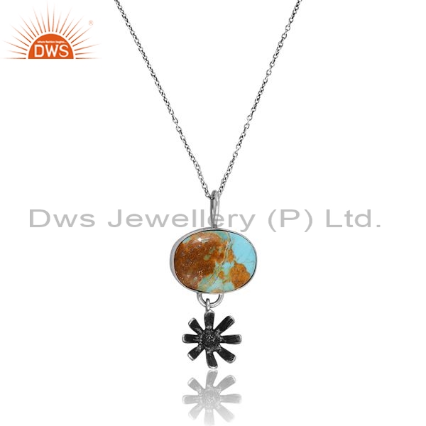 Silver Floral Pendant And Chain With Kingman Turquoise