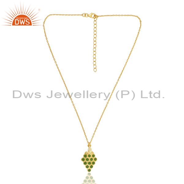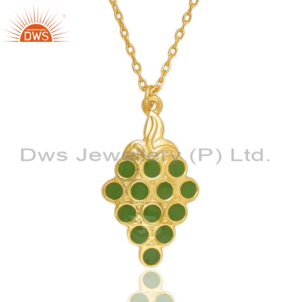 Silver Gold 18K Pendant And Necklace With Grape Green Enamel