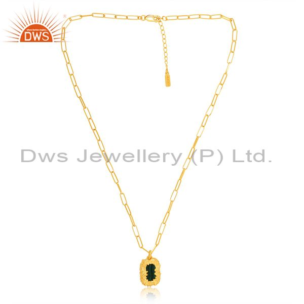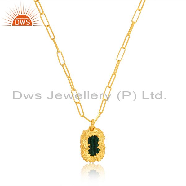 Silver Gold Chain & Pendant With Malachite Coin Cushion Gem