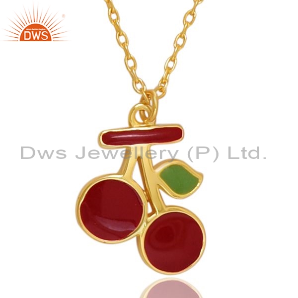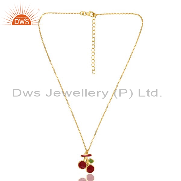 Silver Gold Pendant And Necklace With Cherry Red Enamel