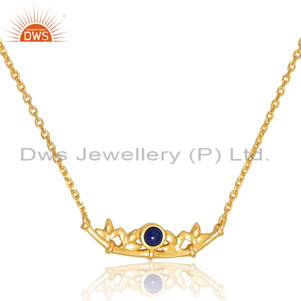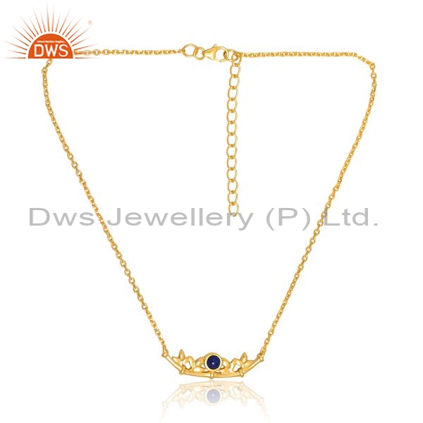 Silver Gold Pendant And Necklace With Flat Lapis Stone