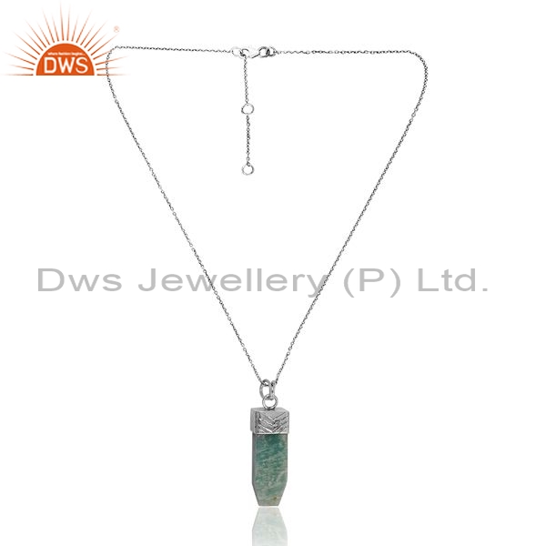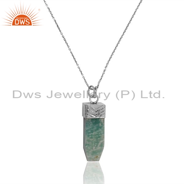 Silver Necklace And Pendant With Amazonite Plain Tube Stone
