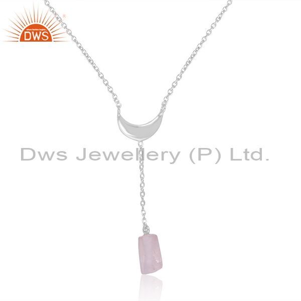 Silver Necklace With Moon And Rose Quartz Drop Pendant Women