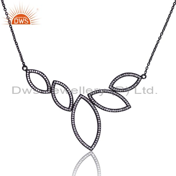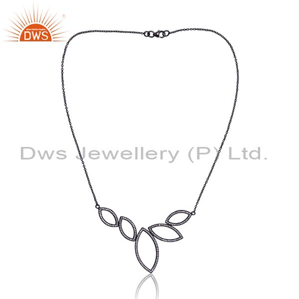Silver Pendant And Necklace Black With Cubic Zirconia