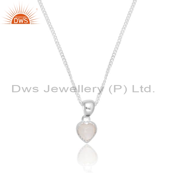 Silver Pendant And Necklace Rainbow Moonstone Checker Heart