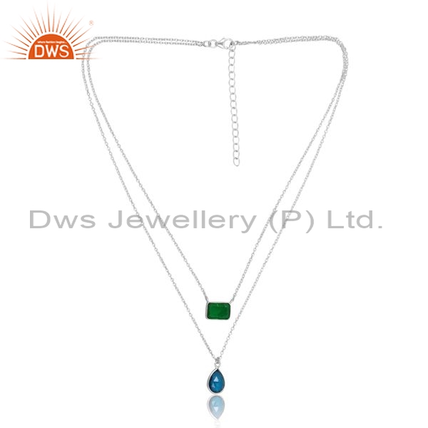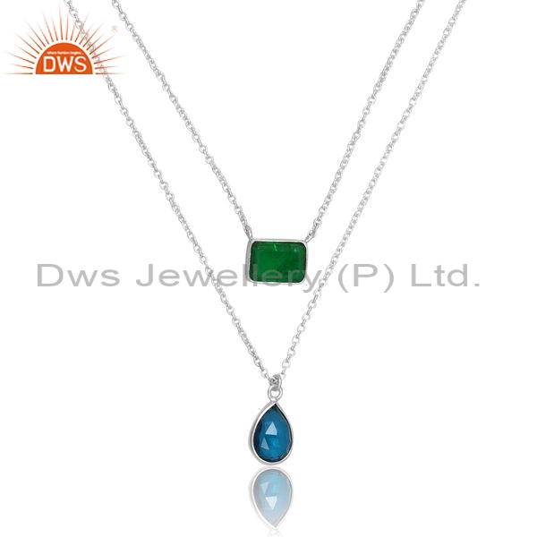 Silver Pendant And Necklace With Emerald And Blue Topaz