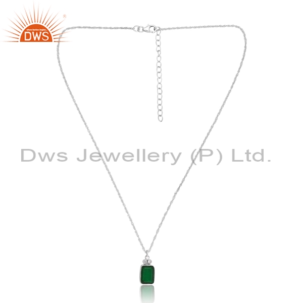 Silver Pendant And Necklace With Emerald And Cubic Zirconia