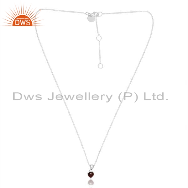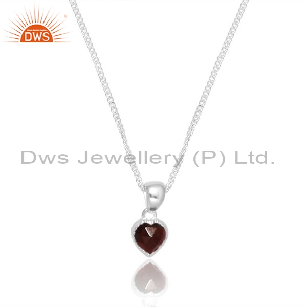 Silver Pendant And Necklace With Garnet Checkker Heart