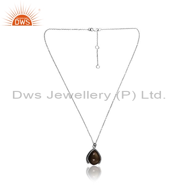 Silver Pendant And Necklace With Gold Sheen Obsidian