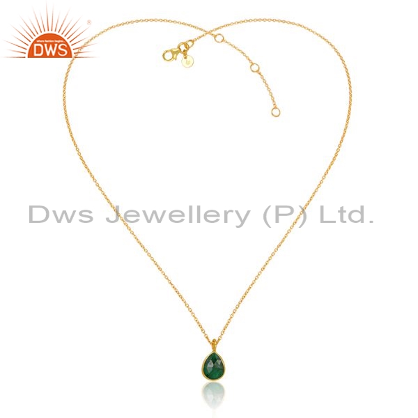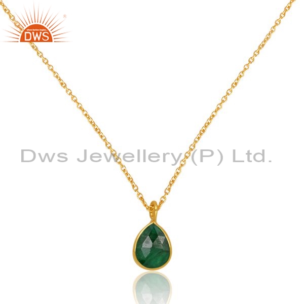Silver Pendant And Necklace With Natural Emerald Pear Cut