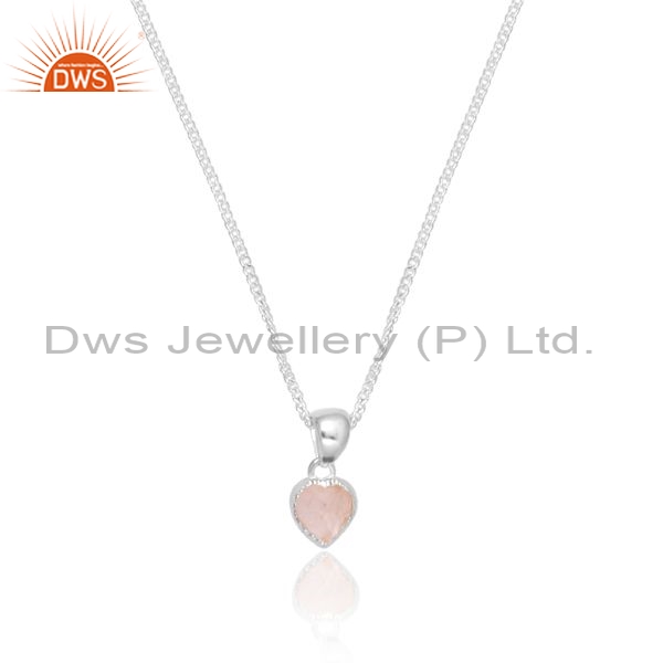 Silver Pendant And Necklace With Rose Quartz Heart Cut