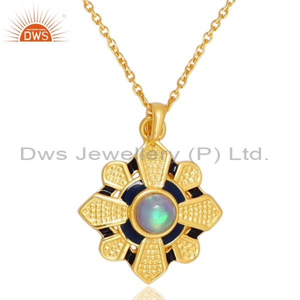 Silver Pendant And Necklace With Round Ethiopian Opal Drop