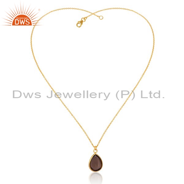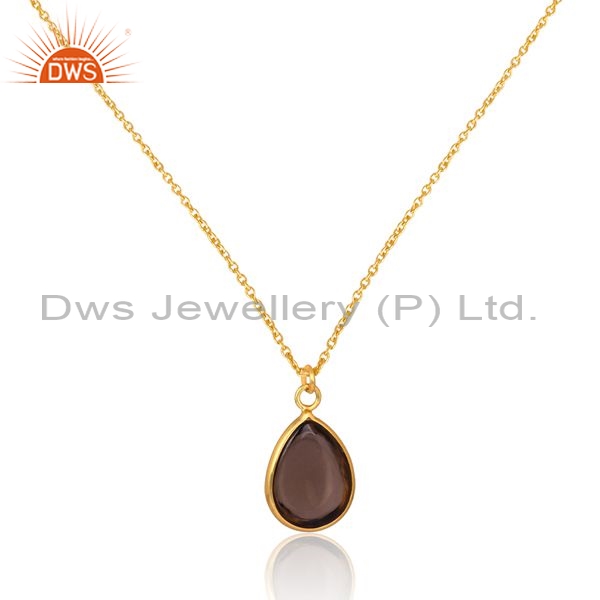Silver Pendant And Necklace With Smoky Plain Briolette