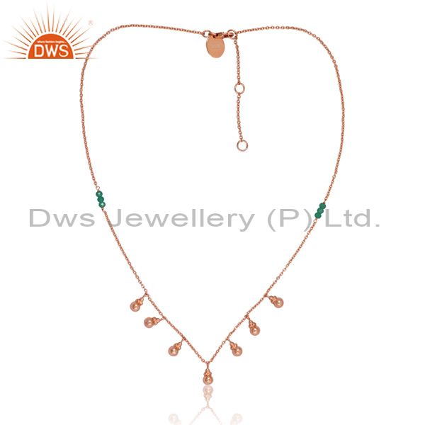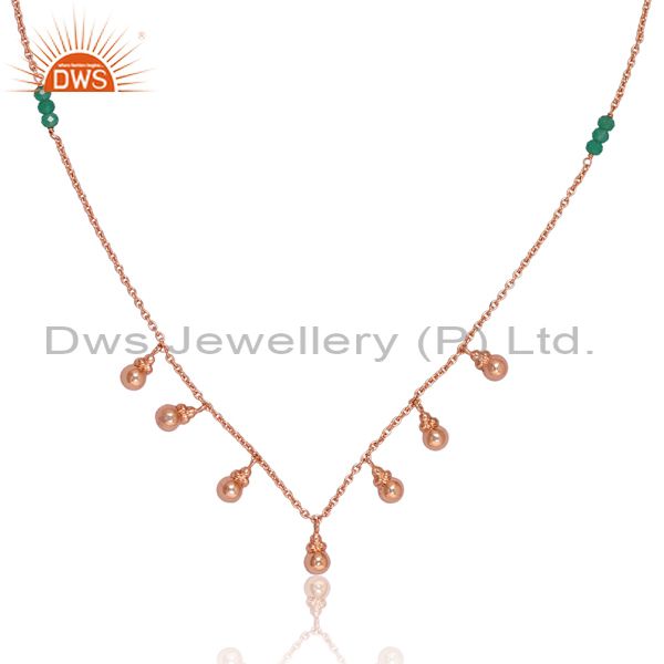 Silver Rose 18K Pendant And Necklace With Green Onyx