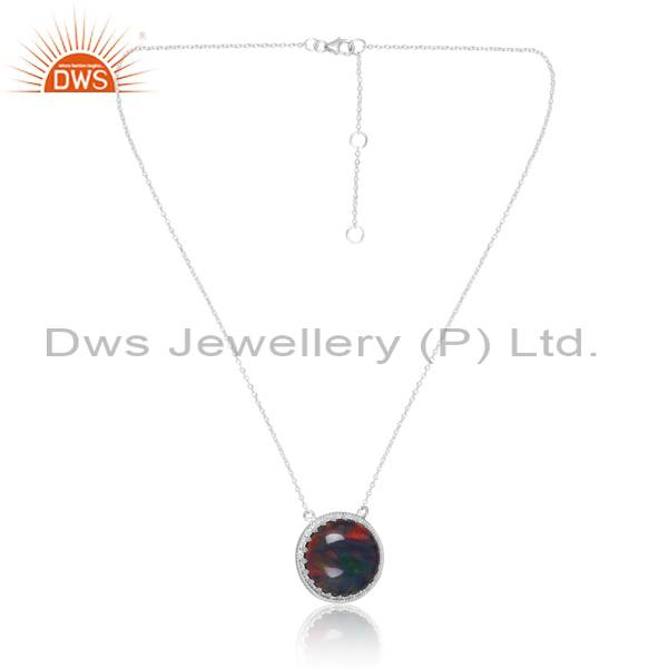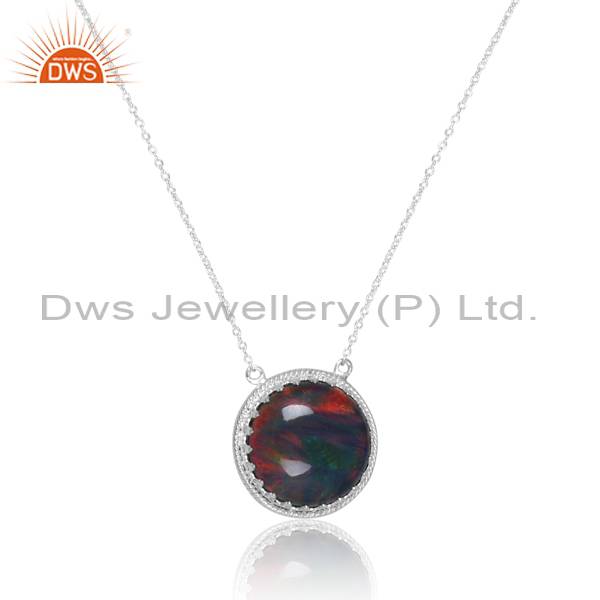Silver Trendy Necklace With Round Cabs Aurora Opal Red Green