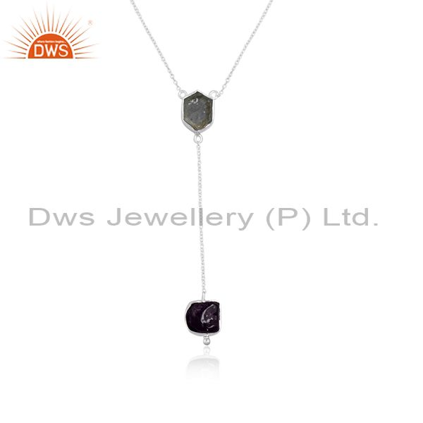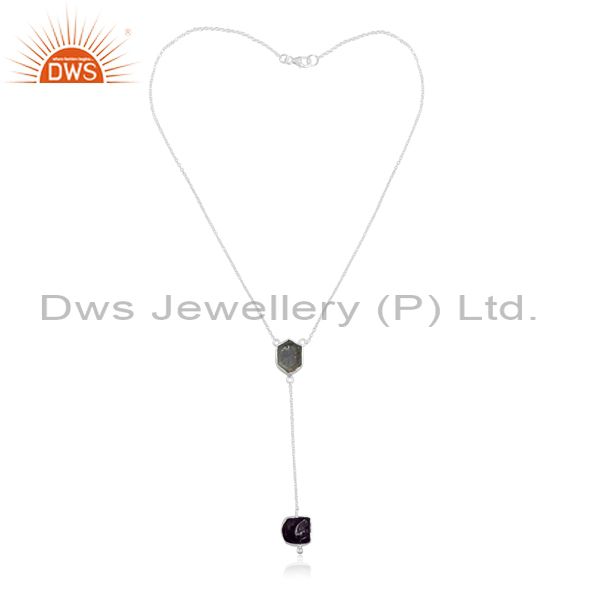Silver White Gemstone Pendant - Amethyst & Aquamarine Rough