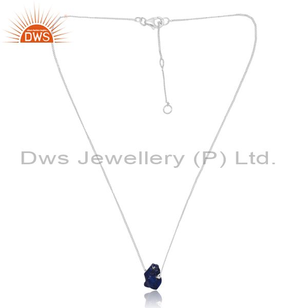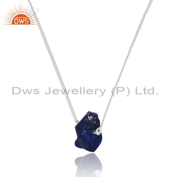 Silver White Lapis Necklace - Unique Rough Unshaped Pendant