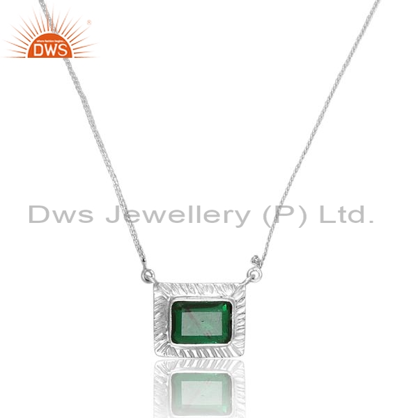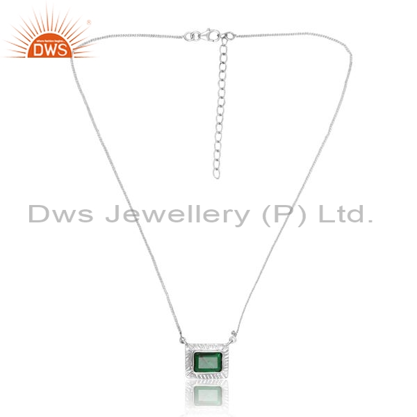 Silver White Pendant And Necklace With Emerald Octagon Cut