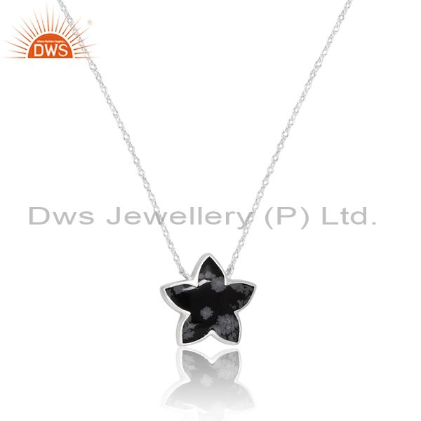Simple Spicy Snowflake Obsidian Moon Flower Drop And Chain