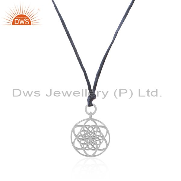 Sky Blue Macrame Cord Solid 925 Sterling Fine Silver Pendant Supplier