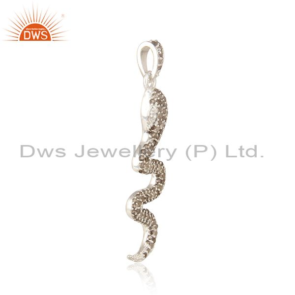 Smokey and White Topaz Gemstone Cluster Snake Design Pendant In Sterling Silver