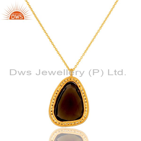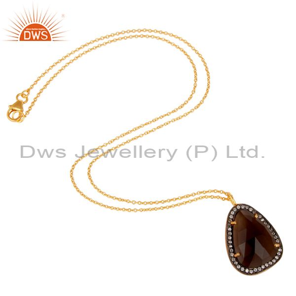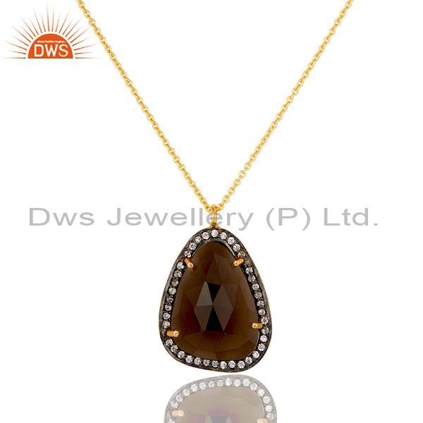 Smokey Quartz and Zircon 18K Gold Plated 925 Silver Handmade Pendant Necklace