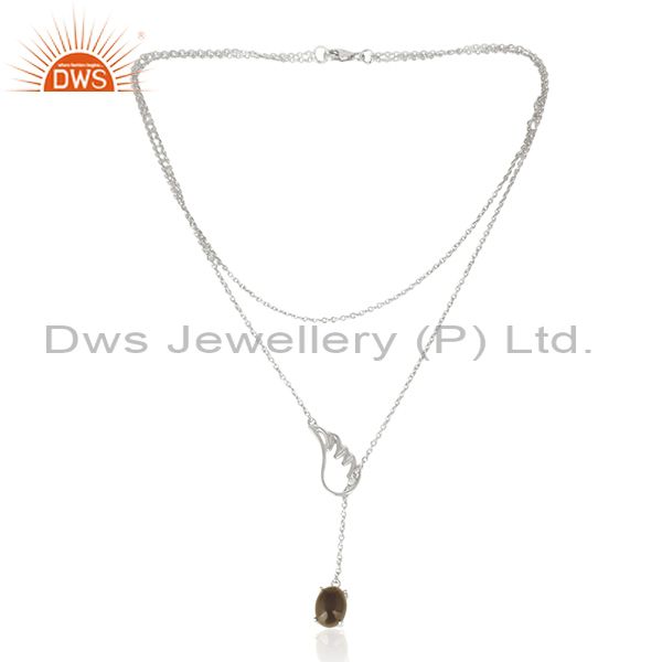 Smoky Quartz 92.5 Sterling Silver Angle Wing Chain Necklace Manufacturer