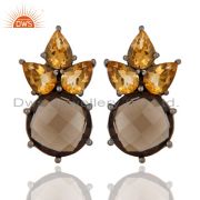 Smoky Quartz And Citrine Cluster Gemstone Pendant In Oxidized Sterling Silver