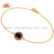Smoky Quartz And Cubic Zirconia Pendant With Chain In 18K Gold On Silver