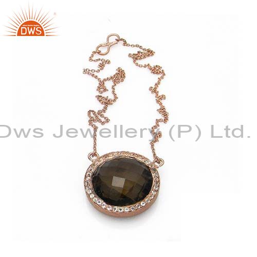 Smoky Quartz And White Topaz 18K Rose Gold Plated Sterling Silver Pendant Chain