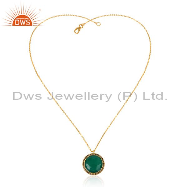 Smoky Quartz Green Onyx Gemstone Gold Plated Silver Chain Pendants
