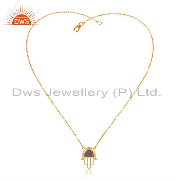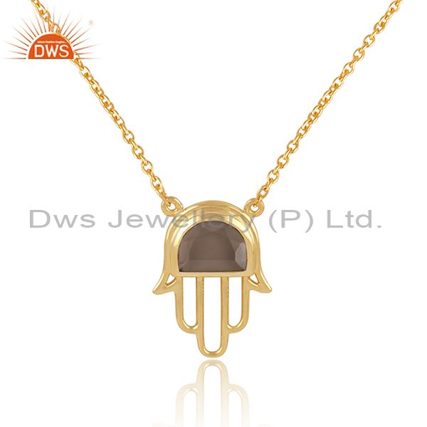 Smoky Set Gold Plated Sterling Silver Hamsa Chain Necklace