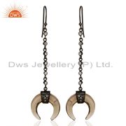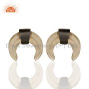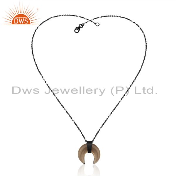 Smoky Topaz Crescent Moon Sterling Silver Black Rhodium Plated Pendant Jewelry