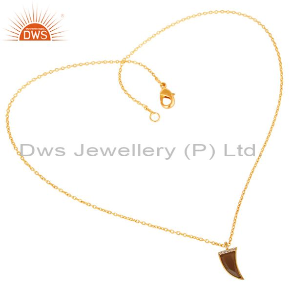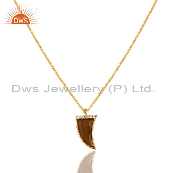 Smoky Topaz Horn Cz Studded 14 K Gold Plated Chain 92.5 Sterling Silver Pendent